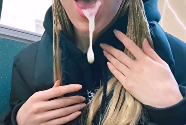 Питерская студентка сосёт в автобусе и набирает в рот сперму